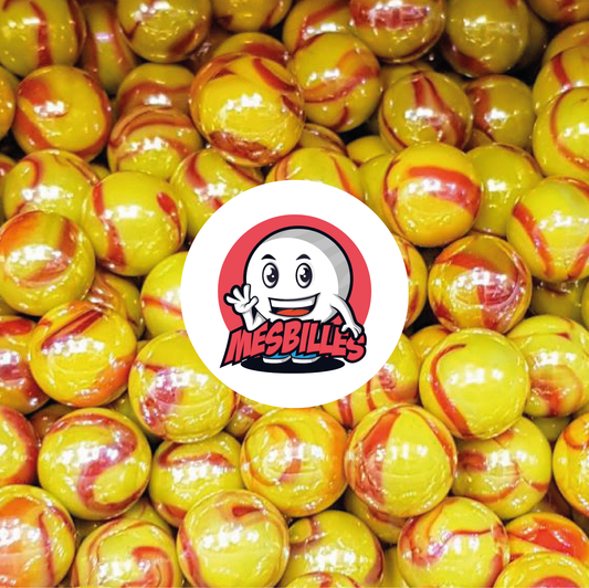 1 Bille Oeuf Cristal Rayé Rouge et Jaune