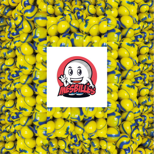 1 Bille Oeil de Dragon Argenté Rayé Jaune 25 mm